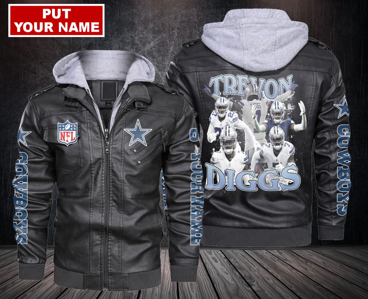 Black Trevon Diggs Dallas Cowboys Leather Jacket Print