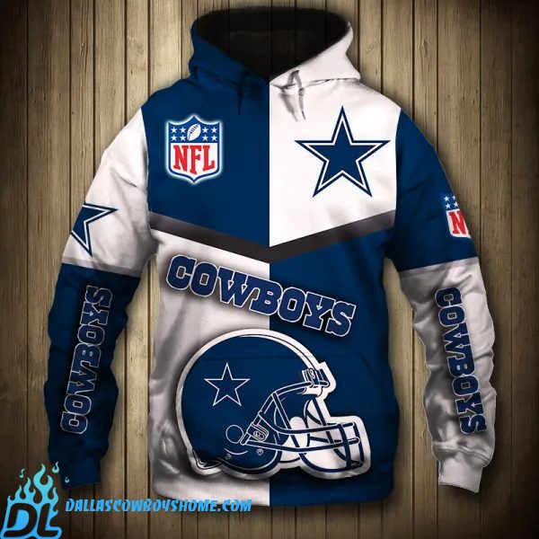 Dallas Cowboys Hoodie NFL 2021 is one of the new hoodie designs from Dallas Cowboys Home, with unique colors and meticulous 3D design. The two sides of the shirt have two different colored sides, the right is white with the Cowboys logo and the left is a unique design combined with the logo.